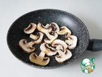 Шампиньоны режем пластинками, жарим с двух сторон на капле оливкового и капле сливочного масла. |