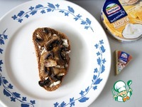 На кусочки хлеба с грибным сыром выкладываем обжаренные шампиньоны. |