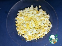 Яйца отварить вкрутую, очистить, остудить. Мелко нарезать кубиками. |