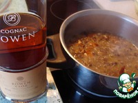 Когда закипит, добавляем бульонный кубик или порошок, соль и перец по вкусу, и 1 ст.л. коньяка |