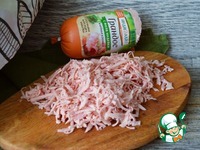 Колбасу натереть на крупной тёрке. Смешать с капустой. |