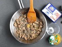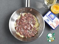 3. Добавьте нарезанную кусочками печень и обжарьте до легкого румянца. |