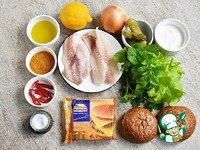 6. Разложите на рыбу острый салат и накройте вторыми половинками булочек. |