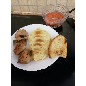 Полсушиваем кукурузный хлеб на сковороде. Собираем наше блюдо на тарелке. В качестве соуса у меня домашний соус из помидор и чеснока. Приятного аппетита. |
