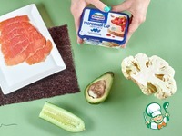 Описание: Всем любителям японской кухни посвящается! Отказываться от любимых блюд, если ты на диете - не повод. Данная закуска выполнена по мотивам популярного японского стрит-фуда, с учетом особенностей низкоуглеводного питания. Творожный сыр - один из главных ингредиентов кето-кухни. А Hochland один из самых известных. Формат закуски очень удобен, можно брать с собой хоть на природу, хоть на работу.