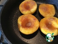 Подготовленные персики выложить на сухую сковороду и разогреть на среднем огне. |