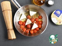 2. Чеснок прогрейте до аромата и сразу кидайте в сковороду помидоры черри. Те, что покрупнее, можно располовинить. Потряхивая сковороду, слегка подрумяньте помидоры. |