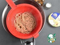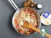 6. Выложите пасту в сковороду, быстро перемешайте, разминая сыр. При необходимости добавьте чуть воды от варки пасты. |