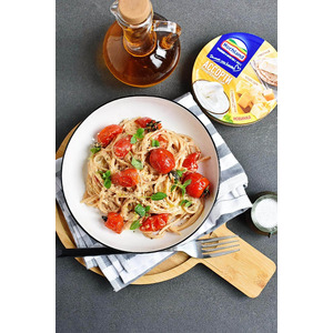 Описание: Мы любим пасту! Нет, мы и макароны очень любим. Когда с мясом, сливочным маслом или подливкой- ммм… Но хорошие спагетти с оливковым маслом и жареными помидорами – прекрасный вариант ужина. Особенно, если добавить в блюдо сыр Хохланд. Рекомендую желтое ассорти круг. Особенное внимание обратите на треугольнички «Четыре сыра» - очень достойный вкус.