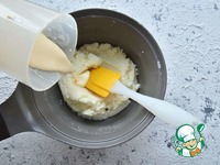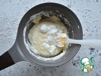 Отделяю яичные желтки от белков. Желтки соединяю с сахаром, ванильным сахаром и взбиваю до осветления и увеличения массы в объеме. Вливаю желтки в горячую поленту и интенсивно перемешиваю массу. |