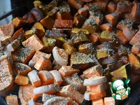 Запечь при 180° в течение 45 минут. Ориентируйтесь на мощность своей духовки. Готовность определяется мягкостью овощей. |