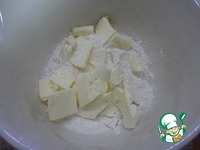 Для теста смешайте муку с солью и добавьте кусочки холодного сливочного масла. |