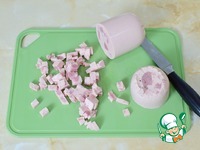 Колбасу "Индилайт" извлеките из упаковки и нарежьте небольшими кубиками. |