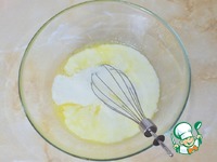 Для приготовления теста смешайте яйцо с сахаром и солью. Влейте кефир. |