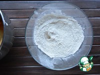 В другой емкости соединяю сухие компоненты теста: муку, соду, разрыхлитель, соль, корицу. Перемешиваю сухую смесь венчиком для равномерного распределения ингредиентов. |
