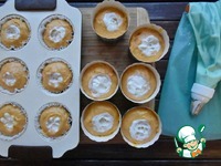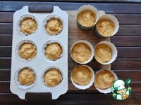 Формочки для выпечки заполняю на 3/4 объема тыквенным тестом. Данного количества теста достаточно, что бы заполнить 12 формочек. |