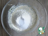 Всыпьте муку, смешанную с разрыхлителем и солью. |