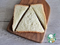 Ломтику тостового хлеба придать форму треугольника, отрезав с двух сторон лишнее, как показано на фото. |