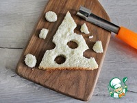 У двух треугольников из тостового хлеба сделать дырки, имитируя ломтик сыра. Два остальных ломтика оставить без изменения. |