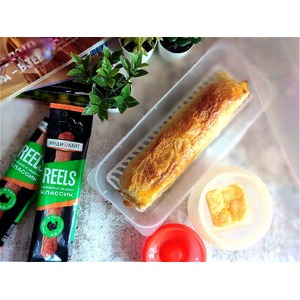 Описание: Ссобойка-перекус со слойками из бездрожжевого слоёного теста с начинкой из колбасок из мяса индейки классик ТМ ИНДИЛАЙТ и сыра.