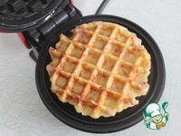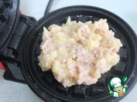 Смазать панели вафельницы оливковым маслом. Выложить полную столовую ложку массы. |