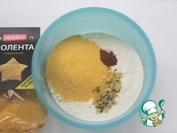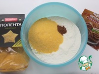 Просеять муку с разрыхлителем, добавить поленту, корицу |