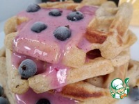 Готовые вафли подаем с джемом, медом, сгущенкой, а можно и не сладкий вариант. Я сделала соус сгущенка+пюре черной смородины. |