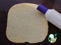 Размягченный сыр раскатать в прямоугольный пласт. |