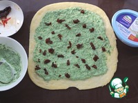 На сыр выложить начинку и подготовленные вяленные помидоры. |