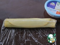 Свернуть в рулет, упаковать в пищевую пленку и убрать в холодильник. |