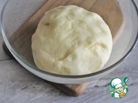 Замесить дрожжевое тесто, используя заявленные ингредиенты. Тесту придать форму шара, уложить в чашку, накрыть и оставить для подъема на 1,5-2 часа в теплом месте. |