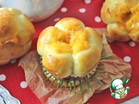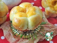 Поместить кусочек сыра в серединку «цветка» - булочки. |