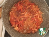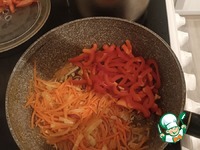 В сковородку выкладываем морковь и жарим до момента как она станет помягче (минуты 3 у меня ушло). Потом в самое пекло бросаем болгарский перец (piper, как скажут болгары)! |