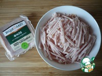 Для приготовления сэндвичей я использовала варено-запеченое филе из грудки индейки ТМ "Индилайт". Нарежьте филе тонкими полосками. |