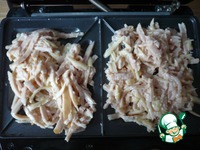 Сэнвичи я приготовила с помощью мультипекаря, используя панель сэндвич. Панель смажьте растительным маслом и выложите приготовленную начинку и выпекайте 4-5 минут. |