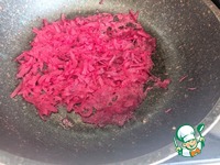 Обжариваем свеклу на масле, добавляем немного воды, тушим до выпаривания жидкости. |
