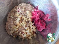 Добавляем к фаршу обжаренные лук и свеклу. |