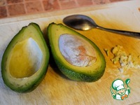 Авокадо разрезать пополам, вынуть косточку. Чеснок мелко нарезать. |