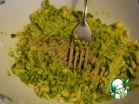 Мякоть авокадо размять вилкой с чесноком и белым перцем. |