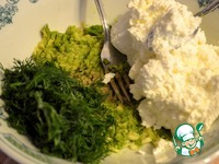 Вмешать мелко нарезанную зелень укропа и творог. |