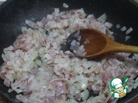 Добавить к сырной массе обжаренный вместе с луком бекон. Перемешать, посолить и поперчить. |