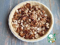 Затем добавить мелко нарезанный лук и лисички (предварительно обработанные и отваренные). |