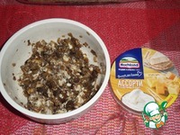 В миску выкладываем обжаренные грибы с луком и чесноком. Добавляем плавленый сыр. |