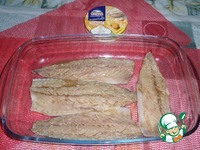 В глубокую форму для запекания выкладываем замаринованное рыбное филе, кожей вниз. |