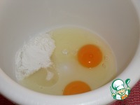 Начнем с приготовления теста для блинов. В чашу миксера разбиваем 2 яйца. Добавляем соль, сахар и разрыхлитель теста. |