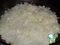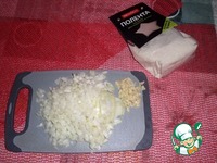 Приступаем к приготовлению начинки. Мелко нарезаем лук и 3 зубчика чеснока. |
