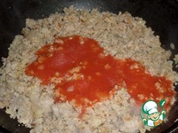 Описание: Блинчики на основе томатного сока, фаршированные мясным фаршем и рисовой полентой. Не скажу, что готовится это блюдо быстро, наоборот, придется потрудится!) Попробуйте.)