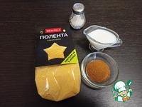 Подготовить ингредиенты для каши. Кукурузная полента ТМ Bravolli. Сахар у меня именно кокосовый, не тростниковый. |