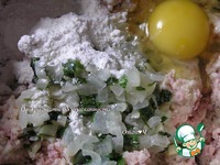 К размоченному хлебу добавьте фарш из мясных изделий, обжаренные овощи в сковороде, яйцо и муку, перемешайте. |