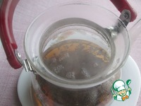 Заварочный чайник обдать кипятком и насыпать заварку чёрного чая. Залить кипятком, добавить 2 палочки корицы, накрыть крышкой и оставить на 5 минут. |